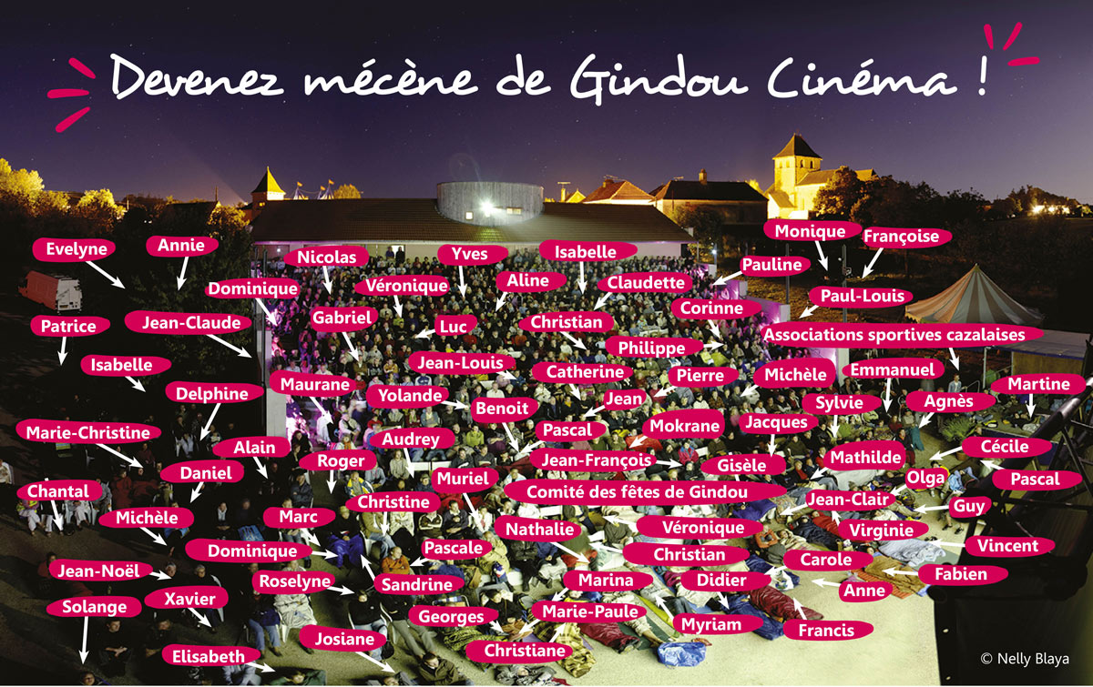 • Gindou Cinéma est une association déclarée d'Intérêt Général : Tous les dons sont déductibles de l’impôt sur le revenu à hauteur de 66 % dans la limite de 20 % du revenu imposable (vous recevrez un reçu fiscal).